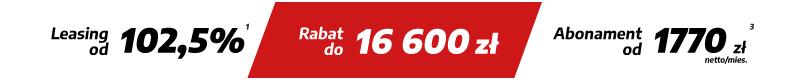 1 Niniejsza informacja nie stanowi oferty w rozumieniu art. 66 i następnych Kodeksu cywilnego. Leasing od 102,5% to przykładowa suma opłat leasingowych dla przedsiębiorstw. Szczegółowe warunki leasingu oferowanego przez PKO Leasing S.A. dostępne u Autoryzowanych Partnerów Isuzu Automotive Polska. Zawarcie umowy leasingu uzależnione jest od akceptacji transakcji przez PKO Leasing S.A. Leasing 102,5% dotyczy samochodów z roku modelowego i produkcji 2025 r.
